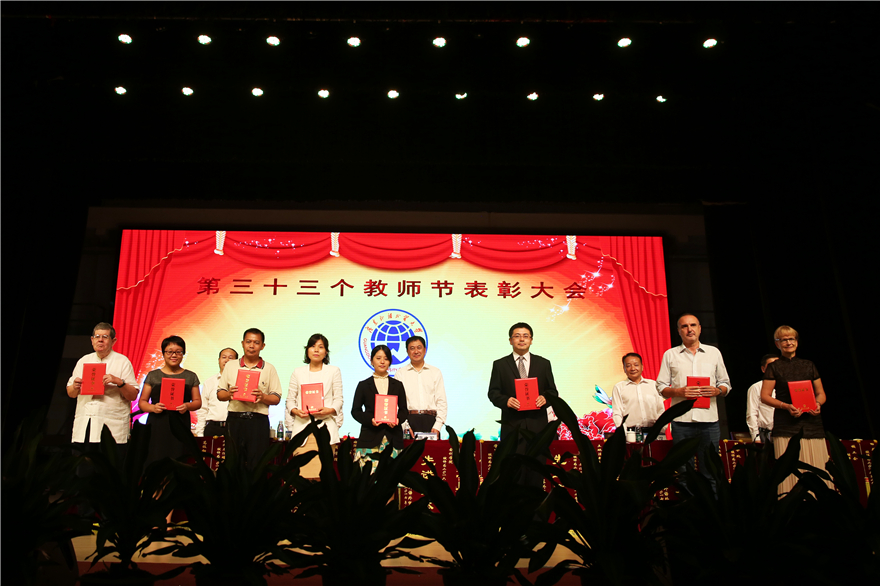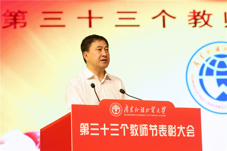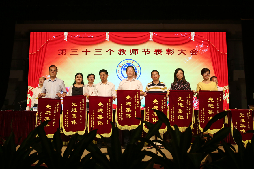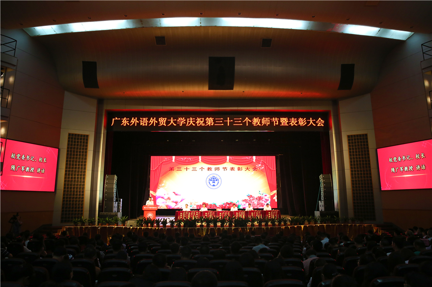 On September 7th, the staff of GDUFS gathered together and attended a congress in Yunshan Hall on the North Campus in celebration of the 33rd Teachers’ Day. At the congress, advanced teams and individuals were commended with certificates of merit and silk banners. SUI Guangjun , General Secretary and President of GDUFS , delivered a sincere speech to express his appreciation to all the contributions teachers had made, and his great expectations for the next school year. The congress was hosted by the Vice President of GDUFS YANG Aimin.