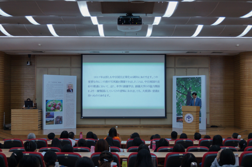 North Campus, Guangdong University of Foreign Studies, Guangzhou, October 12th 2017: Dialogue with Nature – the opening ceremony of Daisaku Ikeda’s photographic exhibition was held in the Lecture Hall of the Library basement on the North Campus. Attendees, including HE Chuantian, Vice President of the University, and Kenji Yoshigo, Vice Chairman of Sōka Gakkai in Japan, were present.