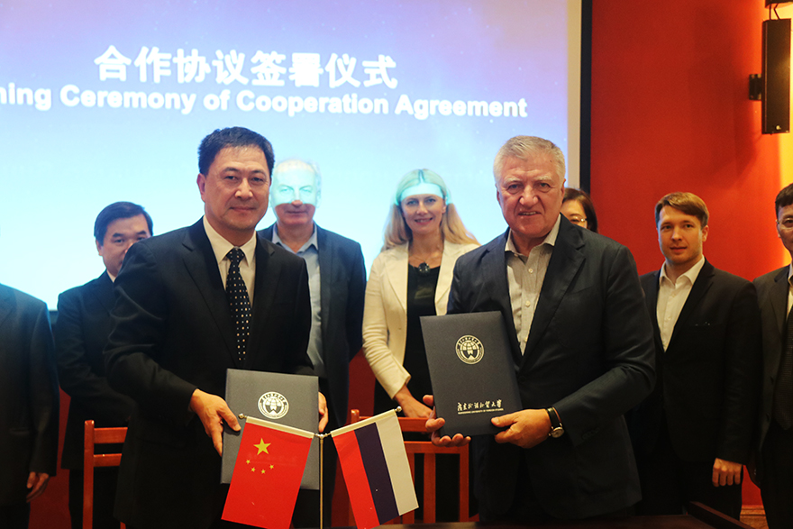 JIAO Fangtai first strongly agreed with Vladimir Shamakhov. He then pointed out that GDUFS can promote the communication between the students and scholars of the two sides and further strengthen the cooperation of think tanks in the future with the advantages of international education and cooperation with another dozen Russian universities. He also believed that the cooperation between two campuses will be effective and comprehensive. In the meantime, he welcomed the students of North-West Institute of Management to study Chinese as well as other majors at GDUFS.
