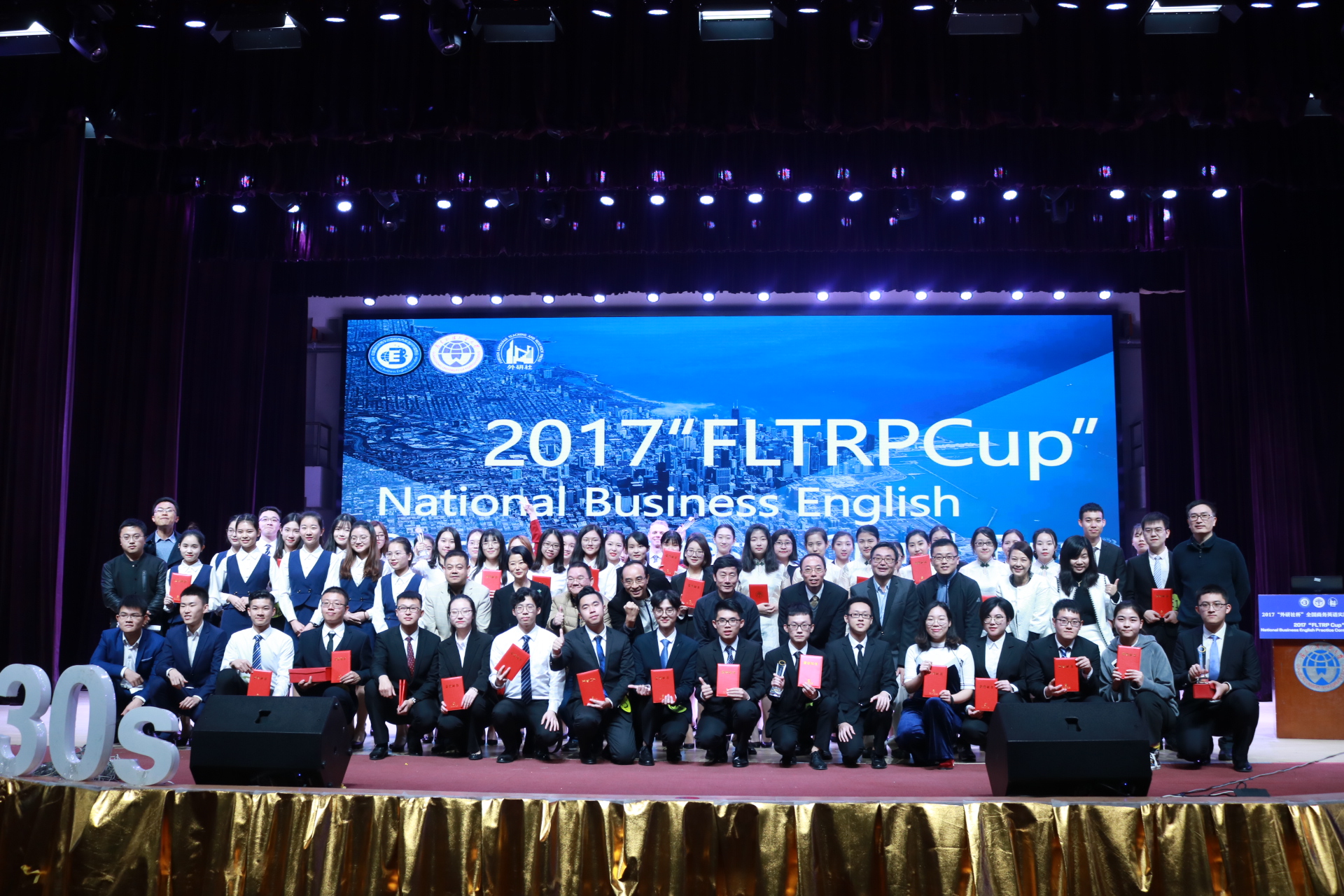 North Campus, Guangdong University of Foreign Studies, Guangzhou, November 24th 2017: Setting its sight on "Craftsmanship", the final round of 2017 "FLTRPCup" National Business English Practice Contest was held in Yunshan Hall. 14 teams from 7 competition divisions across the country along with the host team in GDUFS gathered together to competed for the final win. HuKnows Team from GDUFS won the first prize. LI Yunming, Deputy Secretary of the CPC Committee of GDUFS, XU Jianzhong, Editor-in-chief of FLTRP were attended and gave speeches.