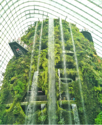 Among all the tourist attractions, the Solar Supertrees leftthe deepest impression on me, for they look so simple but so strikingly stunning and incredibly amazing. Designed by British landscape architecture company Grant Associates, there are 18 towering man-made trees, with the height of 25-50 meters and over 150 thousand plants of all kinds of provenances dwelling on them. The design of Solar Supertrees, whose every part exists to pay homage to the great nature, reveals the ideal living status and perfect harmony architectures and a city can have between them.