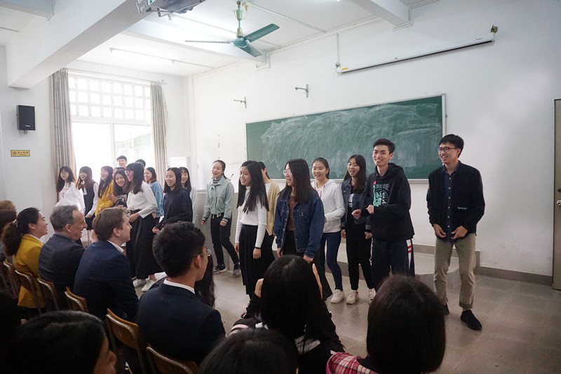 The delegation also visited the Institute for International Education. WANG Fenglan, Vice Dean of Institute for International Education, introduced the conditions of studying, the courses, the scholarships for foreign students, the summer camps and the short-term training at GDUFS to the delegation.