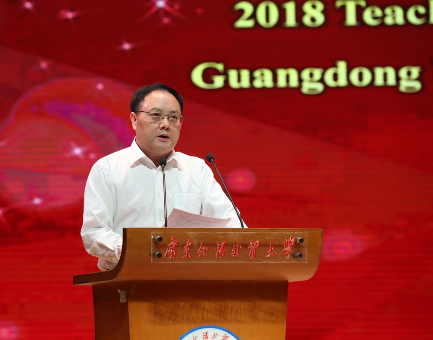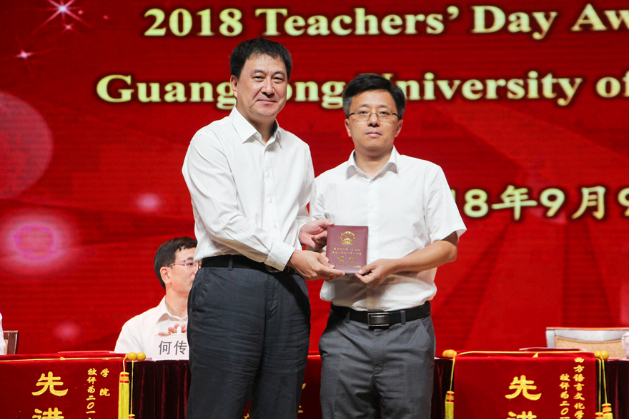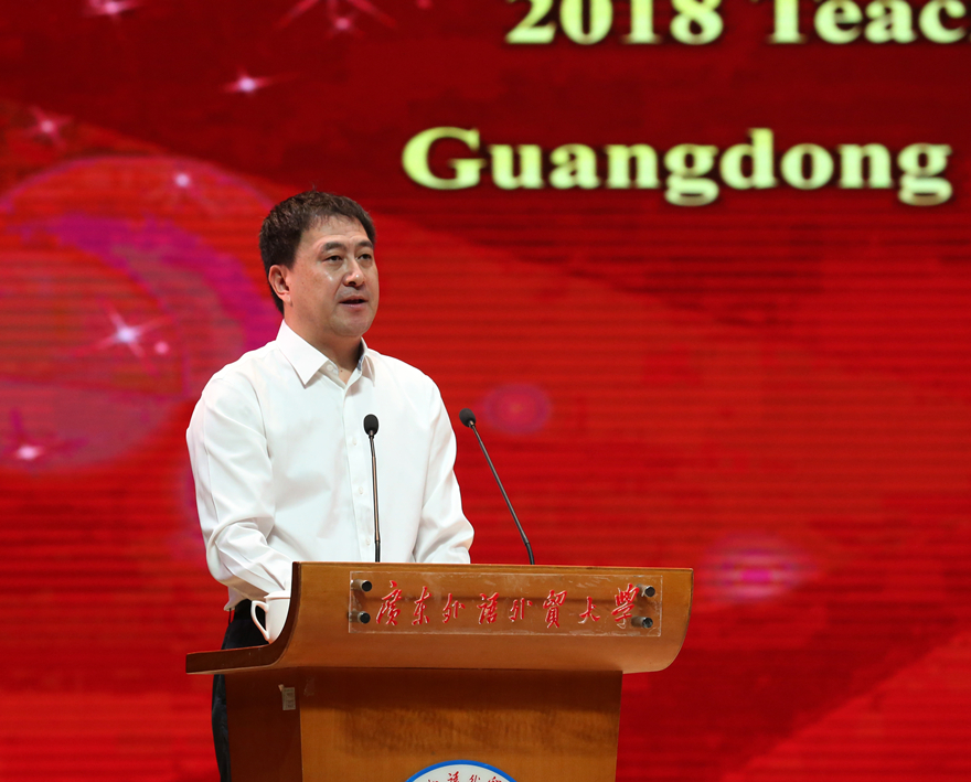 On September 9th, all the faculty members of GDUFS converged on the Yunshan Auditorium to celebrate the 34th Teacher’s Day and award the advanced collective and individuals during 2017-2018 academic year. On the ceremony hosted by LI Yunming, the Vice Chairman of University Board, SUI Guangjun, the Chairman of University Board as well as SHI Youqi, President of GDUFS delivered speeches. The attendees included the Vice Presidents of GDUFS LIU Jianda, HE Chuantian, LIU Haichun, CHEN Linhan, JIAO Fangtai and other school leaders as well as teaching staffs and emeritus faculty members.