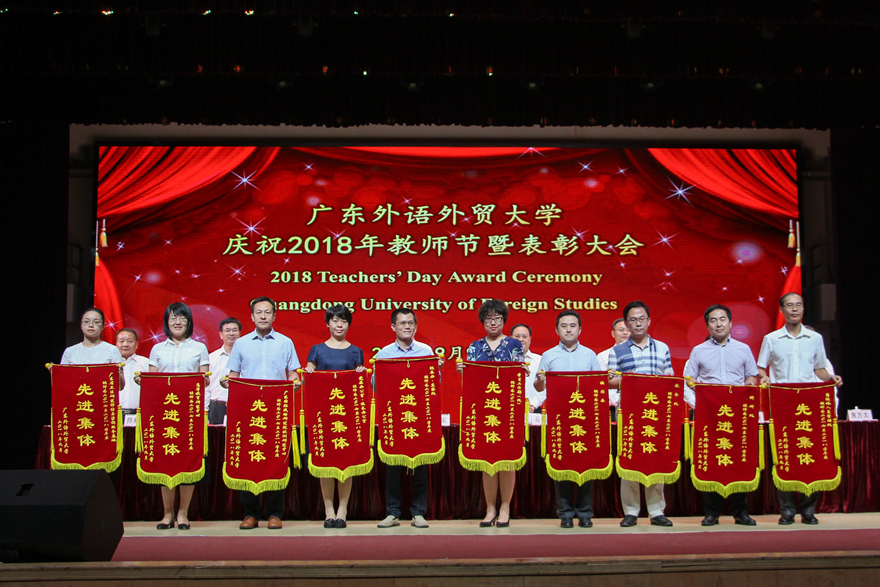 LIU Jianda announced the key projects and awards that GDUFS obtained in 2017-2018 academic year and the list of the honorary collectives and individuals. The university leaders presented awards of “China's Baiqianwan Talent Projects Young Experts with Remarkable Contributions”, “Individual Excellence in Learning after Lei Feng in Work” , “Guangdong Outstanding Teachers” and “Guangdong Outstanding Education Practitioner”, “Model International, Hong Kong/Macao/Taiwan Teachers from 2017-2018 Academic Year”, “Advanced Units of 2017-2018 Academic Year” to their winners. The honorary cetificates were also conferred to staff representatives who retired between September 1st 2017 to August 31st 2018.