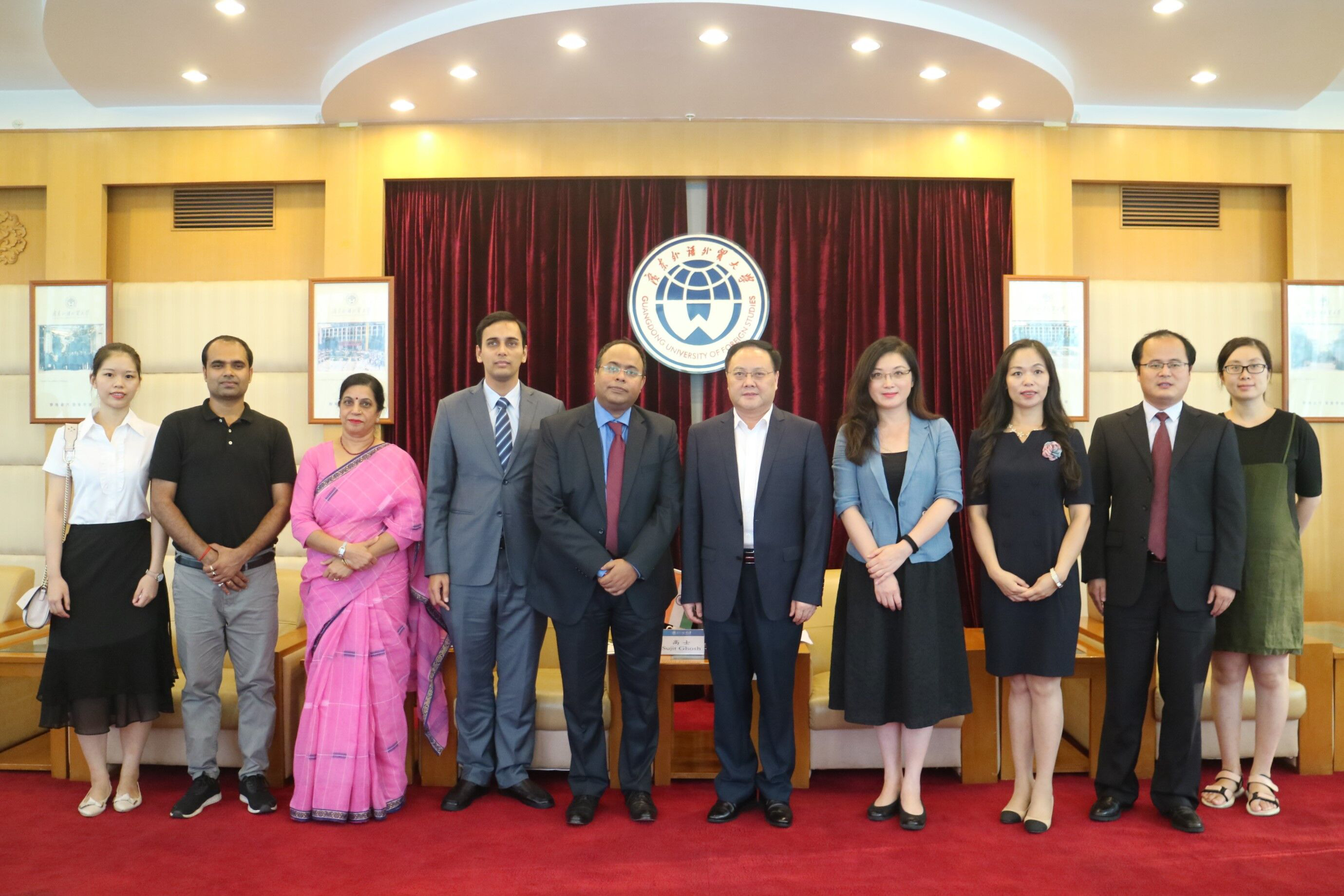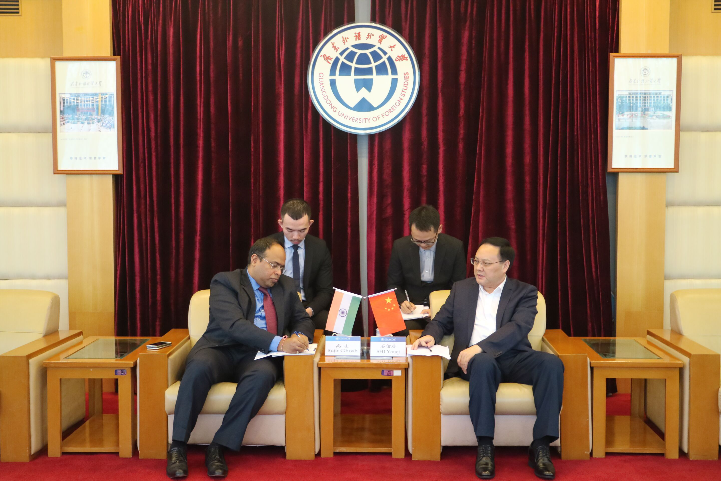 North Campus, Guangdong University of Foreign Studies, September 25th 2018: Sujit Ghosh, the new Consul General of India in Guangzhou, visited GDUFS with his team. SHI Youqi, President of GDUFS, greeted the guests in the Reception Hall in the Administration Building where the two sides held an amicable discussion on further cooperation.