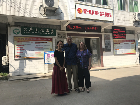The two professors also visited the Changbin Village Committee and the Village Public Service Station. 20 years ago, they had been foreign teachers in Zhenjiang, Jiangsu (also in the countryside), now they came back to a village again and were deeply moved by the changes in the new socialist countryside. Knowing that the children enjoyed their class, Elaine was excited and said,” If I have another chance to teach students in Grade Six, I will re-prepare my lessons and we can have better classes!”