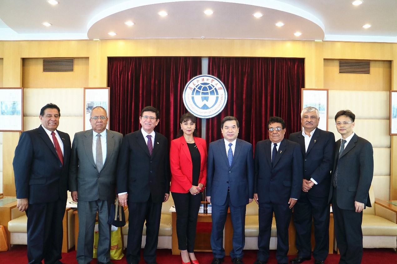 JIAO Fangtai reviewed the history of exchanges and collaboration between the two universities and the circumstance of the Confucius Institute at Universidad Catolica de Santa Maria, Arequipa Peru. He pointed out that this Institute was one of the earliest Confucius Institutes in Peru. The Plaque Conferring Ceremony was held on November, 2008. The enrolment began in April, 2009, setting up the Master and the Bachelor of Teaching Chinese to Speakers of Other Languages, which has many yielded rich harvests since its establishment. He hoped that on the basis of their current cooperation, the two universities would have more visits between teachers and students, strengthen their academic and scientific efforts, and thus achieve the institutionalization of academic communication.