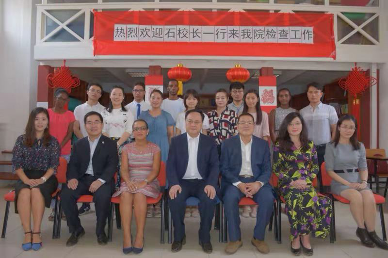 At Cape Verde University, SHI met with Judite Medina do Nascimento, principle of the university. The two sides reviewed the history of good cooperation and frequent exchanges between the two universities since the Confucius Institute at the University of Cape Verde was established. The two sides stated that they would use the Confucius Institute as a link to further strengthen exchanges and cooperation between the two universities and expand new areas of cooperation. During the visit, the delegation attended the meeting of the Confucius Institute at Cape Verde University. SHI empathized with the Chinese teachers and student volunteers working at the Confucius Institute at Cape Verde University. He also visited the new campus of Cape Verde University and the new Confucius Institute office, having a discussion with the project contractor China Longxin Group.