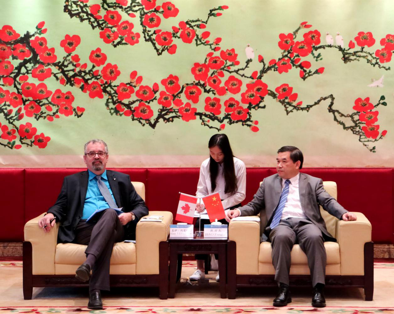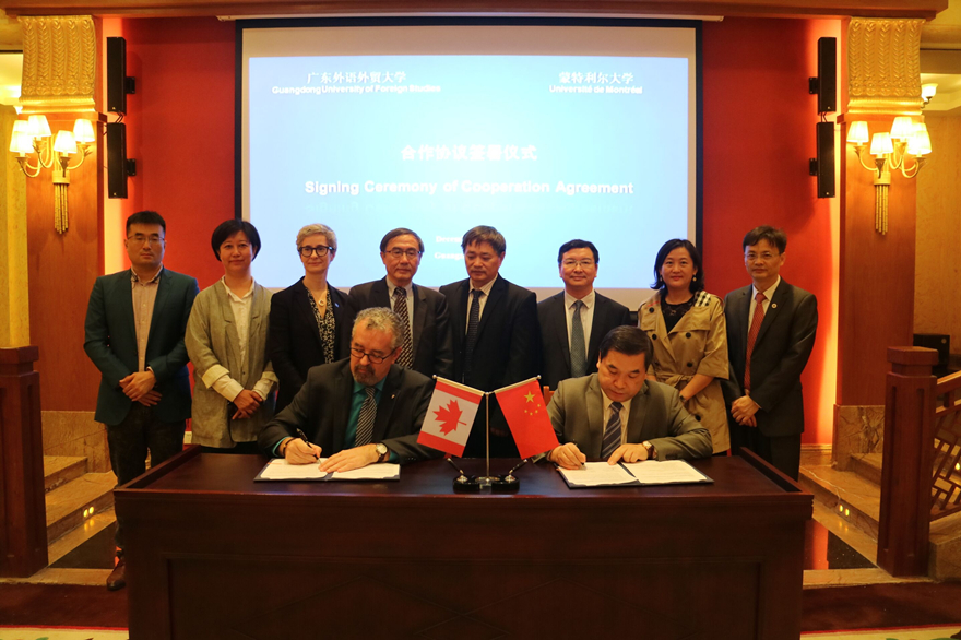 North Campus, December 5th 2018: Guy Lefebvre, Vice President of the University of Montreal visited GDUFS. JIAO Fangtai, Vice President of GDUFS, met with the guests at the VIP Lounge of the North Campus Administration Building. The two sides had an in-depth conversation and signed an agreement establishing cooperation between the two universities.