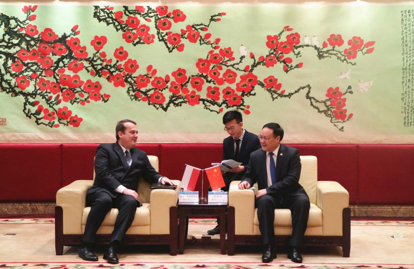 SHI Youqi expressed his warm welcome to the delegation from Poland and made a brief introduction of GDUFS, including the construction of its Polish major. He pointed out that the Polish major was first set up in 2014 at GDUFS. GDUFS is the first in China and the third the south China whose Polish undergraduate professional teaching point was approved by the Ministry of Education. Great achievements have been made in student training and cooperation since the establishment of the Polish major. In recent years, GDUFS has maintained good relations with the Polish Consulate General in Guangzhou. GDUFS is grateful to the Consulate General of Poland in Guangzhou for supporting the construction and development of Polish language in our school. It is hoped that through this visit, the two sides will continue their friendly, cooperative relationship in order to promote the Polish language and the cultural exchange between China and Poland.