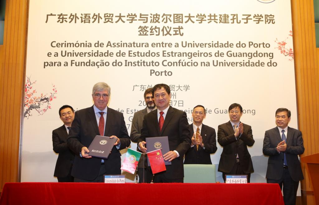 At the signing ceremony, SUI Guangjun mentioned in his speech that GDUFS has set up six Confucius Institutes and Confucius Classrooms since 2006 and is regarded as the university set up the most independent Confucius Institutes or classrooms overseas in Guangdong Province. During President XI Jinping’s state visit to Portugal on December, 2018, XI and Antonio Costa, Prime Minister of the Portuguese Republic witnessed the signing of a cooperation agreement in constructing Confucius Institutes jointly between Hanban and the University of Porto. Hanban gave this mission on GDUFS and it is GDUFS’s first Confucius Institute in the European Region. To GDUFS, it is not only an honor but also a responsibility. António de Sousa Pereira introduced the University of Porto and applauded students who major in Portuguese for their great progress. He said that GDUFS has abundant experience in setting up education programs. The University of Porto will provide support for establishing Confucius Institutes, improving the level of their construction and he sincerely hoped that there will be more communication and cooperation. YIN Dongmin mentioned that the construction of Confucius Institutes was not easy and hopefully it can live up to the great expectations of both sides. Confucius Institutes adhere to the principles of mutual respect, friendly negotiations, and mutual benefits. Hanban has paid extensive attention to this and will respect the educational principles of the two universities, actively supporting the construction of Confucius Institutes and improving their development.