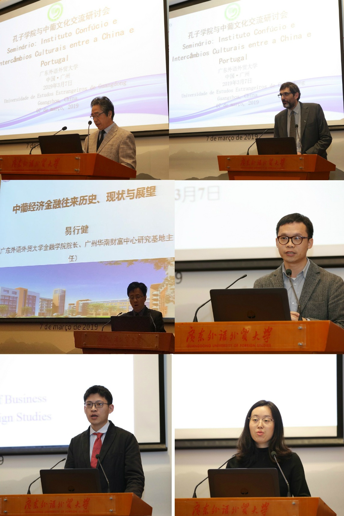At the Confucius Institutes and Sino-Portuguese Cultural Exchange Seminar, scholars from the Chinese Academy of Social Sciences; the University of Porto; Hanban; and GDUFS respectively made their speeches. HUANG Qinghua, Researcher of the Institute of Modern History, Chinese Academy of Social Sciences, pointed out that China and Portugal share a long history of trading and cultural interactions. Both of them are at their own crucial stage of development. China is deepening reform and opening-up in an all-round way and is going to expand the depth and the width of cooperation, creating a bright future for Sino-Portuguese ties. João Veloso, Vice President of the University of Porto, said that the construction of Confucius Institutes contributes to improving the regular teaching of Chinese. Confucius Institutes can help spread Chinese language and culture in Porto as well as strengthen the academic bonds between Chinese universities and the University of Porto. YI Xingjian, Professor and Dean of School of Finance of GDUFS, pointed out the need to create a new epitome of Sino-Portuguese economic cooperation answering to the Belt and Road Initiative, seize the opportunity to construct the Guangdong-Hong Kong-Macao Greater Bay Area, and develop the platform and synergistic effect of Macao and the Hengqin Free Trade Pilot Zone in Zhuhai. WEI Jing, Officer of Hanba, reviewed roundly on the construction process of the Confucius Institutes in Portugal. The Confucius Institute of Porto, the fifth Confucius Institute in Portugal, has great significance for enhancing communication between China and Portugal as well as strengthening the bonds between the two countries’ people. YAN Shaohua, Researcher of the Guangdong Research Institute for International Studies, talked about the significance of the Guangdong-Hong Kong-Macao Greater Bay Area to Portugal and that it was a perfect chance to cooperate with University of Porto. DING Hao, Vice Professor of the School of Business made a speech on how the cooperation between Guangdong and Macao will improve Sino-Portuguese cultural exchanges. SHANG Xuejiao, Teacher of the Faculty of European Languages and Cultures, discussed the distributions of classes and the features of development of Confucius Institutes in Portugal.