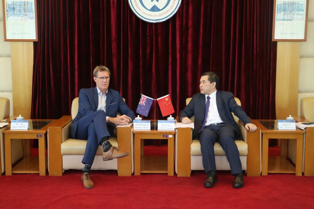 JIAO welcomed the delegation with great enthusiasm and showed his gratitude to the Massey University for its support and assistance it provided for the two universities’ cooperation. He briefly looked back on the history of cooperation between the two sides, as well as their achievements. JIAO also said that while strengthening the existing depth of cooperation, both sides can actively implement the DBA cooperation program of Schools of Business and “2+2” program of International College, and expand their cooperation in more fields.