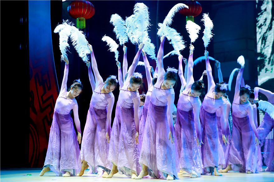 The audience was greeted by the Hymn of the Motherland, a combination of music, poems and art presented by the students from the school orchestra and the School of Journalism and Communication. Next followed by LUO Kaiyuan, a GDUFS alumni, and WANG Xinruo, the counsellor of Faculty of Asian Language and Culture, singing a song called Sweet Tunes and The Aroma of Flowers Are in the Air. The College of Art brought their dance A Chinese Ink Painting of Guangdong to the stage, presenting the unique charm embedded in traditional Cantonese culture.