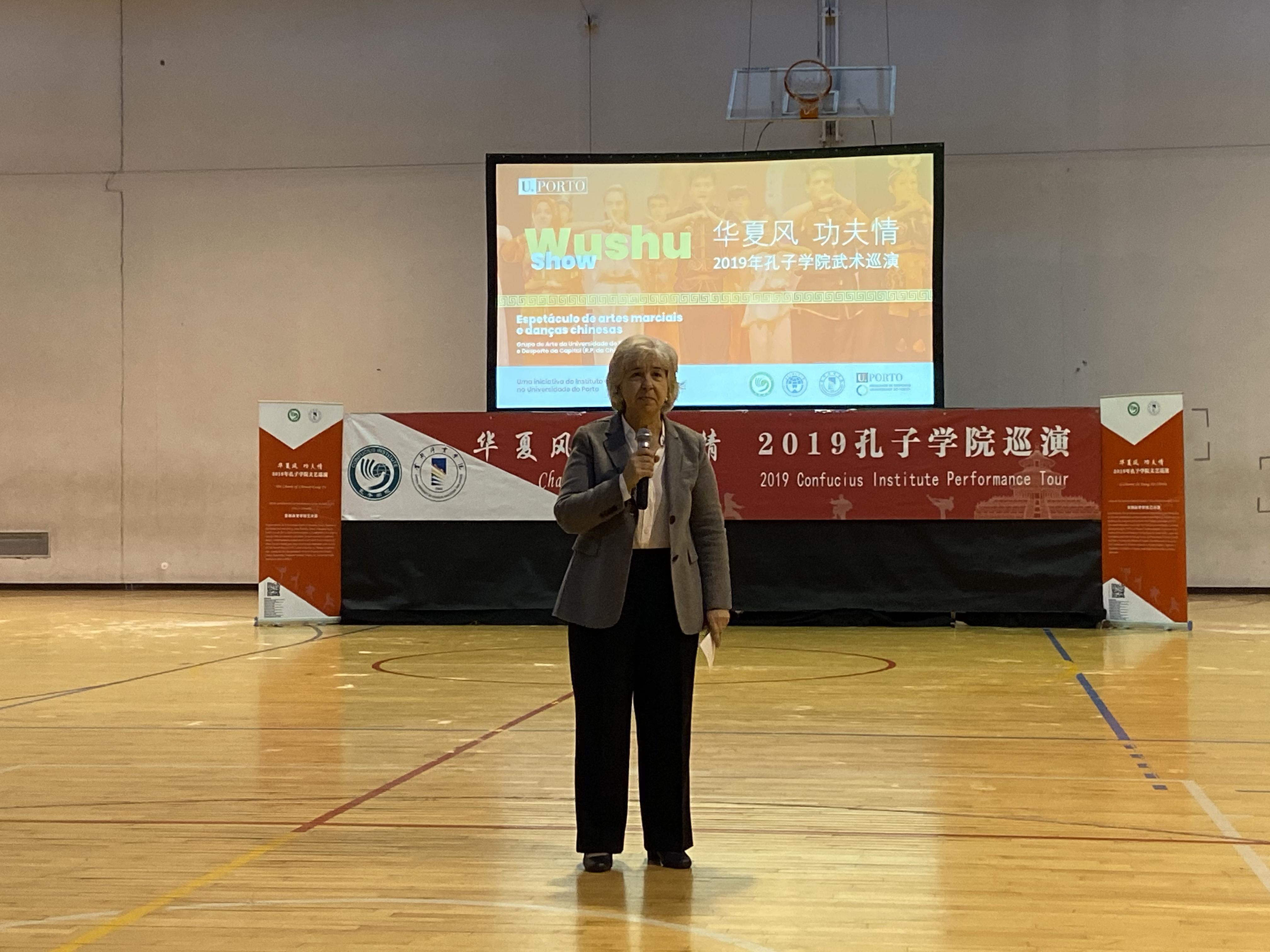 North Campus, Guangdong University of Foreign Studies, October 19th 2019: Hosted by the Confucius Institute Headquarters, jointly undertaken by the Confucius Institute at the University of Porto and the Capital Institute of Physical Education, the “Charm of Chinese Kung Fu” performing tour in Europe was held at Porto, Portugal. Vice Presidents of the University of Porto, Maria Fernandes and Juana Carvalho, as well as Chinese Director of the Confucius Institute, YI Zongyong, joined in the event. Teachers and students from the University of Porto, martial arts enthusiasts and hundreds of overseas Chinese enjoyed the performance together.