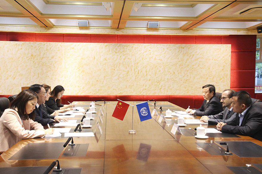 North Campus, Guangdong University of Foreign Studies, November 8th 2019: Giuseppe Crocetti, Representative of the International Organization for Migration (IOM) in China and Office of Mongolia, visited GDUFS. SHI Youqi, President of GDUFS, met the guests in the VIP Hall of the Administration Building. The two sides had a discussion on some cooperative projects.
