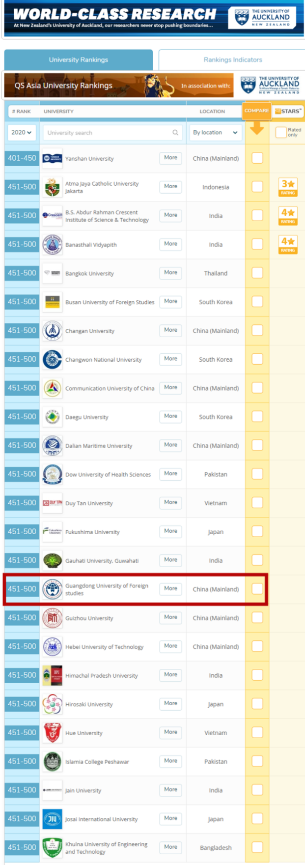 On November 27, QS released the QS University Rankings of Asia, 2020, and the GDUFS successfully entered the top 500 in Asia for the first time.