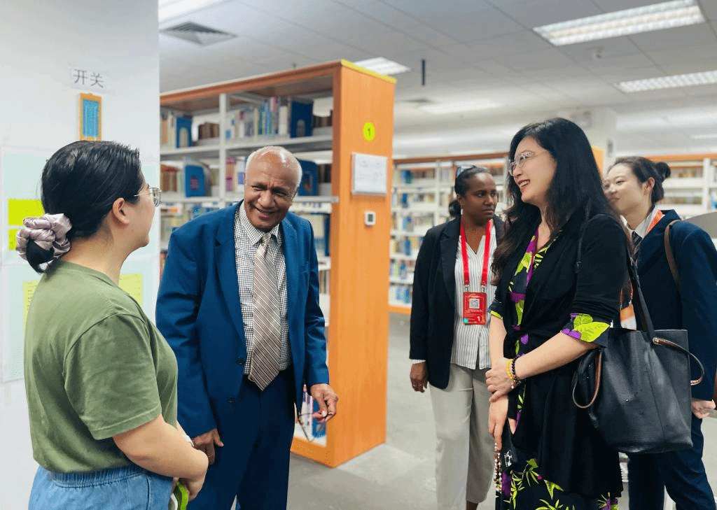 Sato Kilman visited the GDUFS History Museum and the library, and held discussions with representatives of the Institute for International Education. Cai Hong introduced GDUFS’s history, development, mission and vision, distinctive talent cultivation objectives, as well as its programs for international students. She noted that the university features a strong international orientation and has extensive experience in cultivating talent from Pacific Island countries, adding that GDUFS welcomes more outstanding young people from these island countries to pursue their studies at the university. Sato Kilman spoke highly of GDUFS’s efforts in educating international students in China and said he would recommend outstanding youth from Pacific Island countries to study at GDUFS.