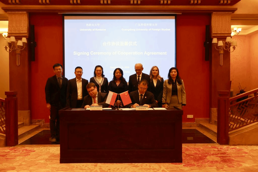 On the afternoon of December 18th, a delegation led by Adam Reich, Rector of the University of Rzeszów, Poland, visited Guangdong University of Foreign Studies (GDUFS). Yan Xiangbin, President of GDUFS, met with the guests in the VIP Hall of the Administration Building of the Baiyun Mountain Campus. During the visit, the two sides signed a Memorandum of Understanding (MOU) and held in-depth discussions.