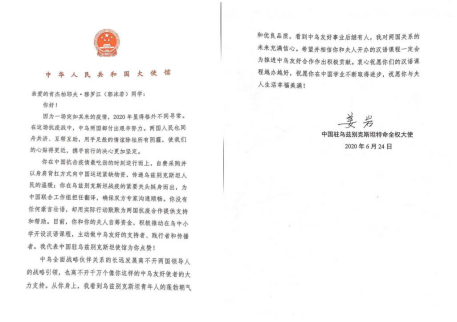 The letter from the Chinese ambassador to Uzbekistan