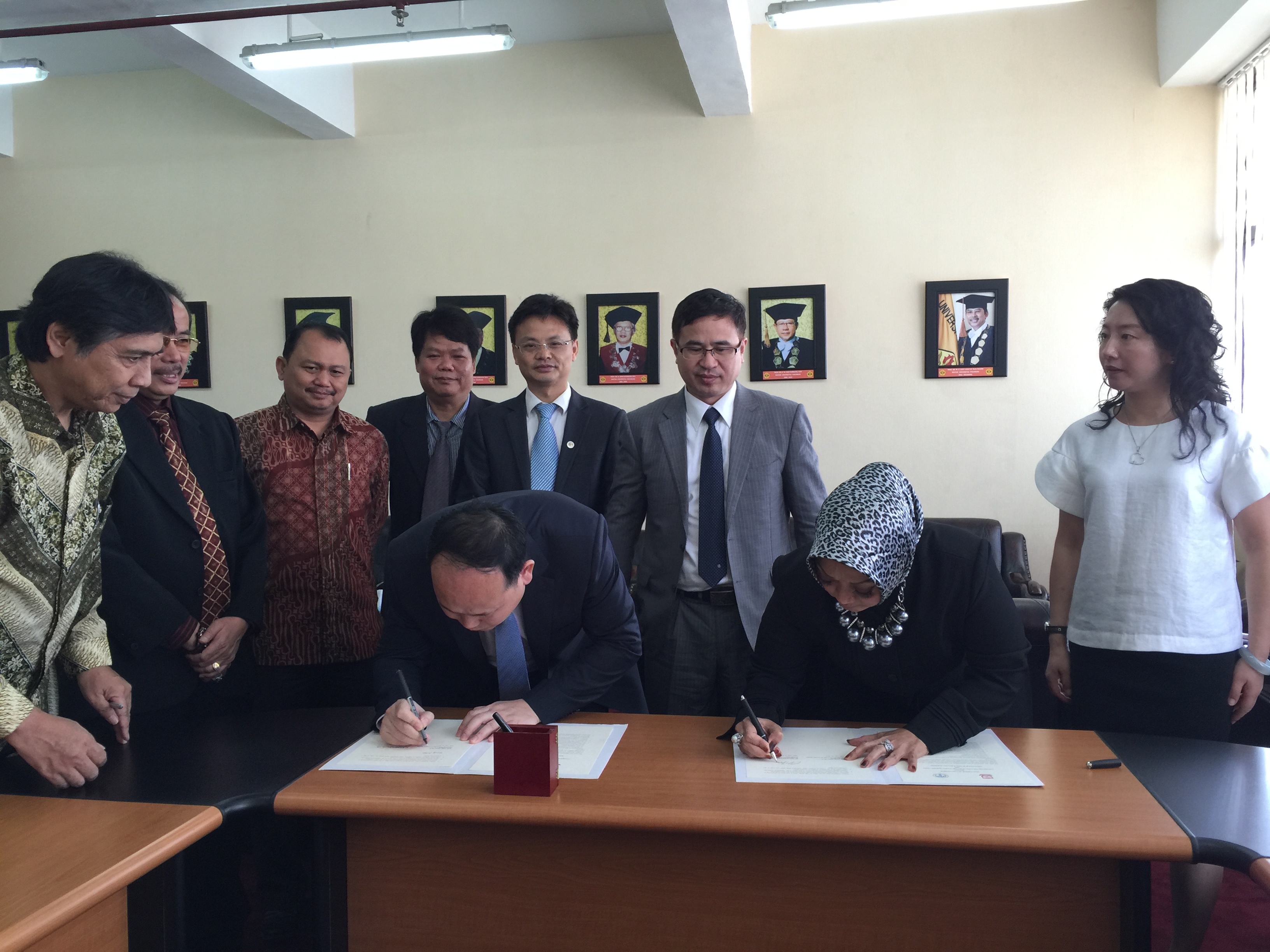 On 29th May, YANG and his partners went to Bandung. They visited the Palmer Shun Dan University and received a warm welcome from Doctor Jaja Suteja, Vice Principle. Both parts agreed to expand and deepen existing cooperation agreements and strive to achieve more results as relate to academic conferences, student exchanges and mutual visits of scholars. After the meeting, YANG signed a MOU with the International Women`s University, a sister school of Palmer Shun Dan University.