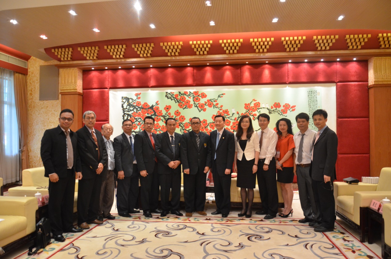 Delegates from Universitas Stikubank explained their wish for the establishment of a Confucius Institute at their university. At the beginning of the meeting, Vice President FANG presented general information and the educational features of GDUFS, followed by President Hasan’s introduction of the Chinese subjects taught at Universitas Stikubank. At the end, both exchanged gifts.
