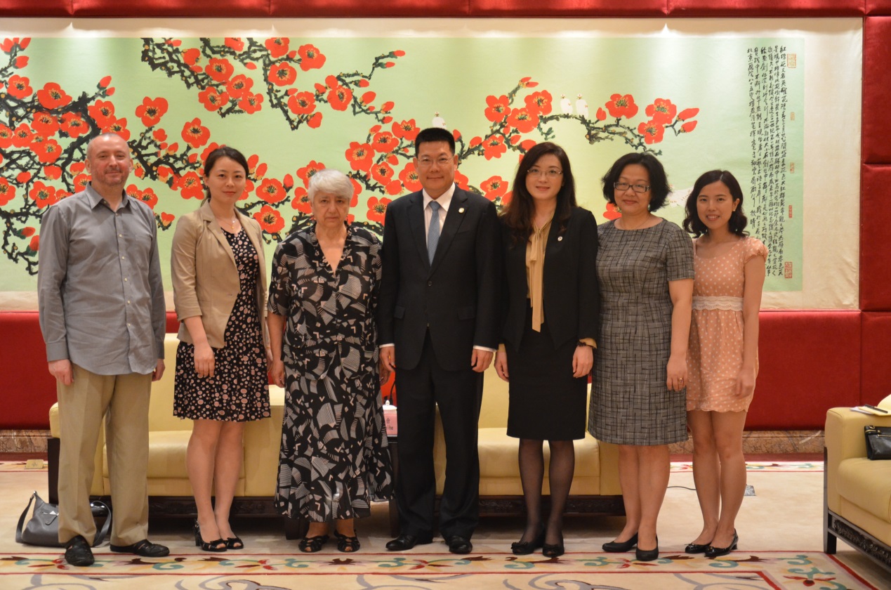 On May 13, TER-MINASOVA SVETLANA, the Department Chairwoman of the Foreign Language and Region Study School of the Lomonosov Moscow State University Russia (Moscow University) visited GDUFS. President ZHONG Weihe of GDUFS met the guests in the VIP Room of the North Campus. The Chief of the International Office, CAI Hong, the Dean of the Faculty of European Language and Culture, Yang Ke, Deputy Director of the Foreign Language and Applied Linguistics Research Center, YANG Jing and a Russian teacher Sharafutidinov Dzhalil were also present.