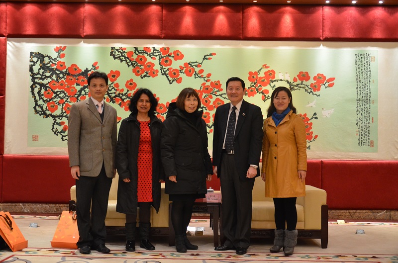 On January 13, Jeanette C. Takamura, Dean of the School of Social Work at Columbia University/USA, and Professor Neeraj Kaushal of the same School of Social Work visited Guangdong University of Foreign Studies (GDUFS). At the north campus, FANG Fanquan, Vice-President of GDUFS, met with them in the VIP room. Additionally, YI Zongyong, officer of the Office of International Cooperation & Exchange and, additionally, FU Guifang, Deputy Dean of the School of Politics and Public Administration were present.