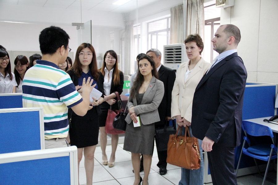 Later, accompanied by the student representatives from the GDUFS Russian language majors, the delegation toured the GDUFS's multilingual service center, the culture plaza and the library. At last, they had conversations summing up the visit in the conference room on the fourth floor of the library.
