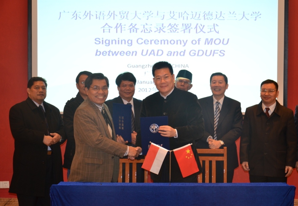 Its construction and development are greatly indebted to the support of partner institutions in Indonesia and the Indonesian Consulate General in Guangzhou. President Zhong hopes that students at UAD will come to GDUFS to learn about Chinese culture and business knowledge and that the student at GDUFS will study in Indonesia and have Chinese teaching internships in Indonesia, which would help to facilitate the cultural communication between the two countries.