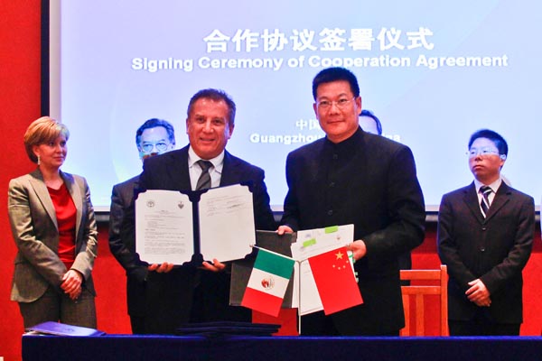 Dec 7th_ The headmaster of the Autonomous University Of Puebla, Robert Enrique, along with the Mexican delegation visited GDUFS on Dec.1st. President Zhong Weihe and Vice President Fang Fanquan of GDUFS met Enrique on the north campus. Both sides signed a cooperation agreement after an exchange between students and teachers, a discussion about academic cooperation and so on.