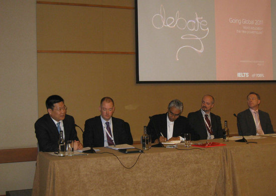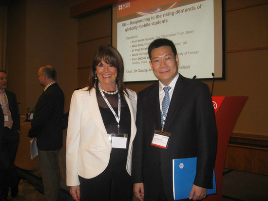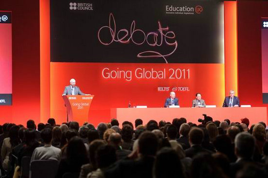 March 17-At the invitation of the British Council, GDFUS' President Mr. Zhong Weihe attended "Going Global 2011 International Education Conference" held at the Hong Kong Convention and Exhibition Center on March 11th and 12th. The Director of International Cooperation and Exchange Mr. Jiao Fangtai, Secretary-General of the Guangdong International Institute for Strategic Studies Mr. Li Jing, and Deputy Director of Academic Affairs Mr. Fan Zhenghua also attended the event.