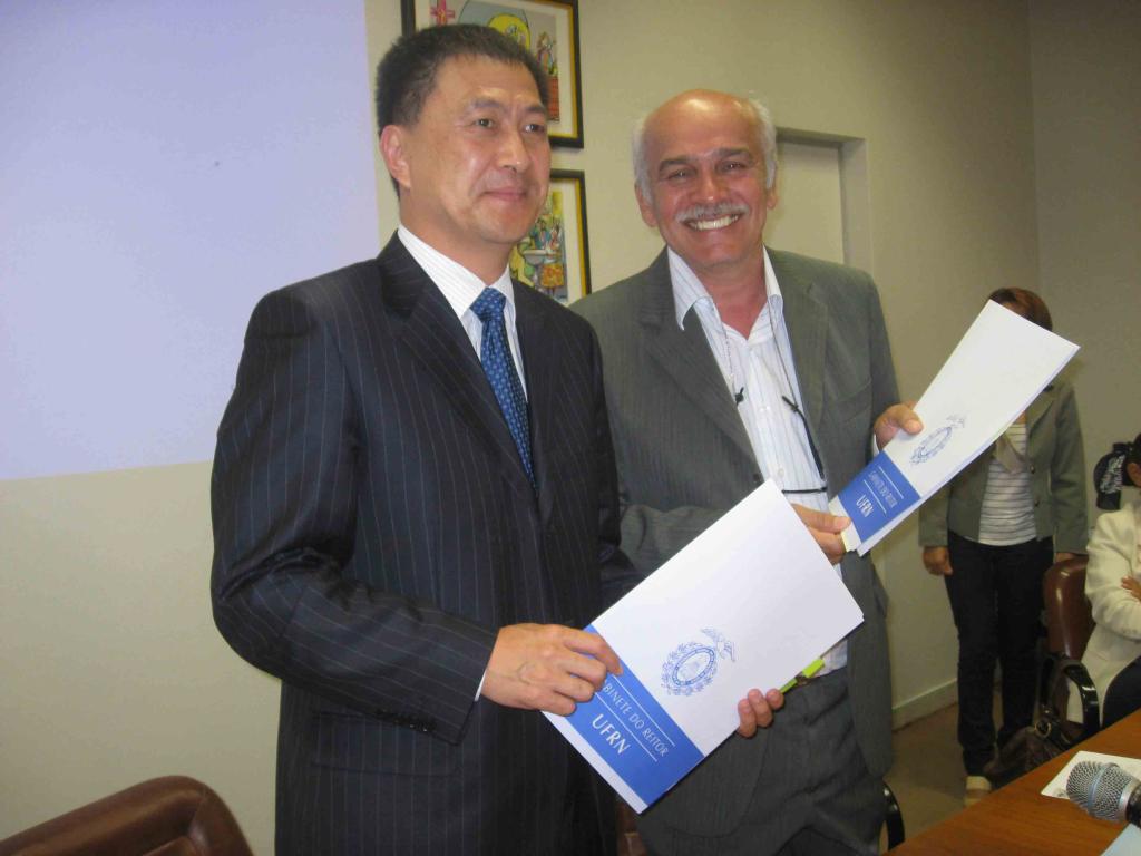 On November the 16th, Secretary Sui visited the Federal University of North Creek. The Acting President of the university Mr. Jose Ivonildo do R阦o expressed a warm welcome to Secretary Sui and his company. After listening to an introduction of the Federal University of North Creek, Secretary Sui made a brief outline of the history, school features and future development of GDUFS as well as the established partnerships with higher institutes in Brazil. Later, meetings were held between the two sides, attended by the International Office, the Development and Planning Office, the Portuguese Language Department and other teaching staff. Then, Secretary Sui together with Mr. Jose Ivonildo do R阦o signed a cooperation agreement between the two universities. Both parties hope that students in the Portuguese Department at GDUFS will soon be sent to study at the Federal University of North Creek and that a joint research project will be launched in the near future.