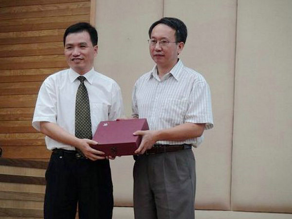 Ping hong(left) presenting souvenirs to Bo Penghui(right)
