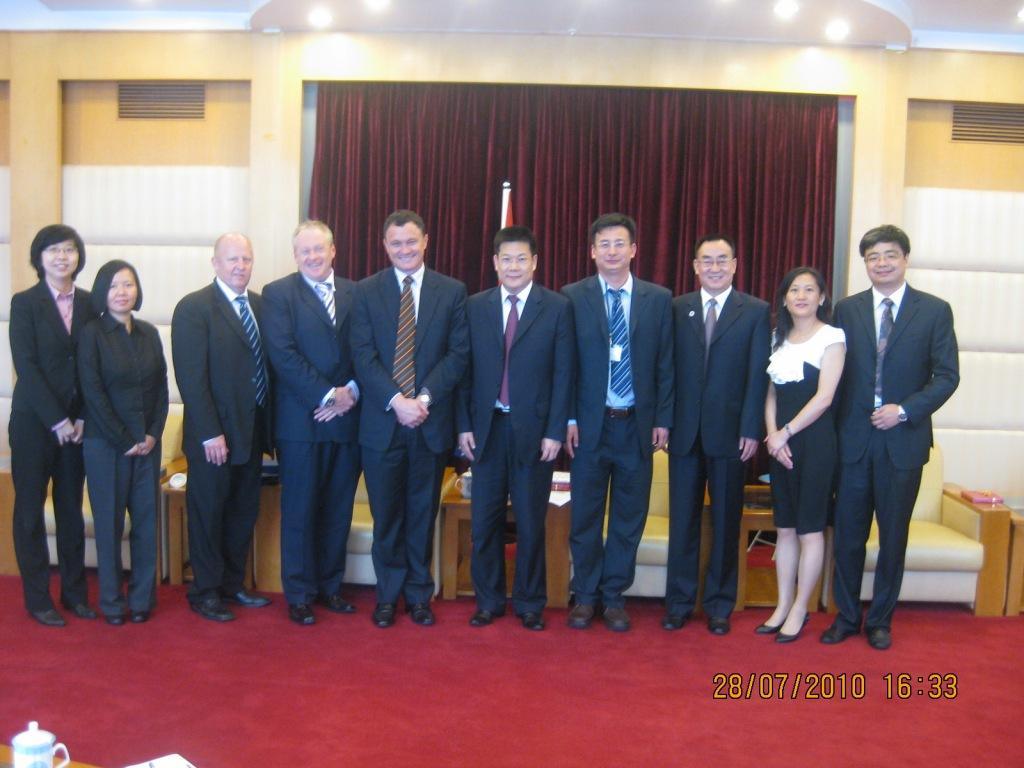 August 6 - On the afternoon of July 28th, a delegation from Department of Education and Training, Queensland, visited the GDUFS North Campus. The guests were Associate Director General Rod Camm for the Department's Skills Queensland, Construction Skills Queensland CEO Brett Schimming, Queensland University of Technology Deputy Vice-Chancellor International and Development Scott Sheppard and his assistant Ms Annie Chan, CEO Xu Jun and Development Director Cao Bing of Trade and Investment Queensland representation in Guangzhou. GDUFS President Zhong Weihe, Vice-President Gu Yeli, International Office Deputy Director Liang Jie and International College Associate Dean Wu Yiming welcomed the guests.