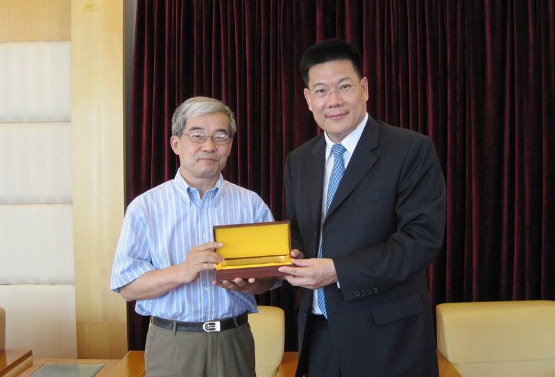 Mr. Zhong Weihe presenting a souvenir to Wu Yanbo