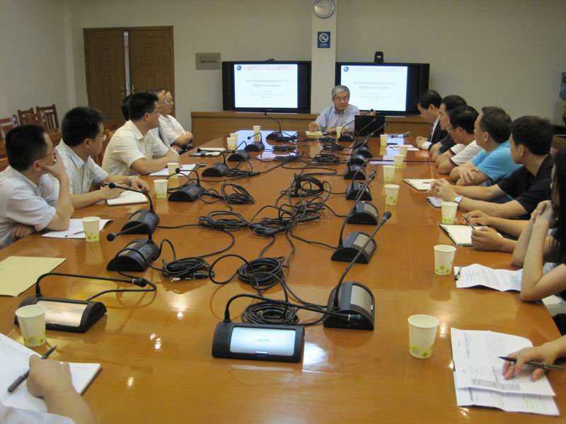 In the following meeting attended by Mr. Wu Yanbo and GDUFS administrators, a discussion on "Global Strategy of American Higher Education" was conducted. Mr. Wu Yanbo explained the understanding of global strategy in American colleges, remarking that the idea of internationalization in the United States has been well practiced by the colleges' awareness of conformation to the current trend of globalization. As an experienced educator in the America Higher Education System, Mr. Wu, in detail, introduced the general global strategy implemented from curriculum design, academic environment creating, and international student education. By comparing and contrasting the implementation of global strategy in colleges of the United States and China from the above-mentioned aspects, he pointed out the changes and challenges for both. Mr. Wu Yanbo emphasized that the domestic and international competitiveness of a college, along with the comprehensive quality of its students, define the term "internationalization", and that it is a core necessity for every college to design its own global strategy.