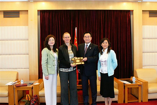 Mr. Gu Yeli welcomed Ms. Reichwein on north campus. He stated that the implementation of the China-EU Project has brought about new impetus to the strategic development of the school. According to Mr. Gu Yeli, the Masters Program in European Studies launched injects new life into the education of international personnel at GDUFS. In addition, noteworthy scholastic achievements on European Studies have been made while increasing academic exchanges between colleges in China and Europe. This has contributed a great deal to the internationalization of GDUFS.