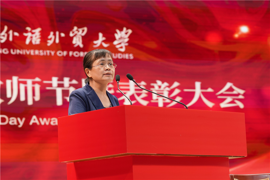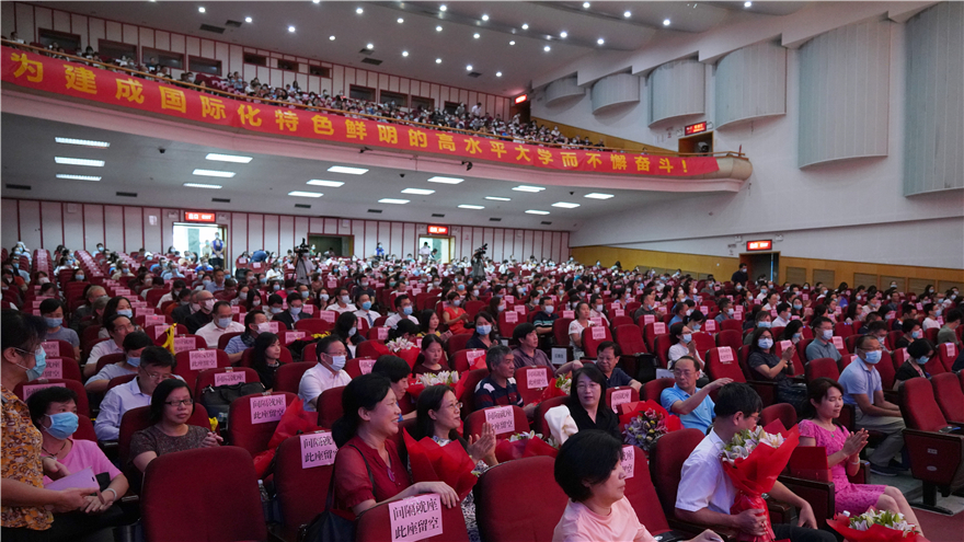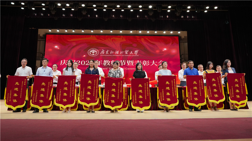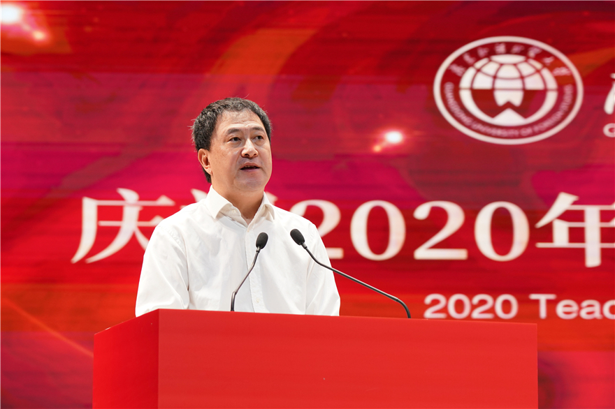 North Campus, Guangdong University of Foreign Studies, September 14th 2020: On September 10th, all teaching staff gathered in Yunshan Hall to celebrate the 36th Teachers’ Day. A selection of 2019-2020 faculty were commended and given awards. SUI Guangjun, Chairman of the university board, and SHI Youqi, President of GDUFS, delivered speeches respectively. WANG Tinghui, Vice President, presided at the award ceremony. DIAO Zhenqiang and LI Yunming, Vice Chairmen of the university board; vice presidents LIU Jianda, HE Chuantian, LIU Haichun, CHEN Linhan as well as JIAO Fangtai, attended the ceremony. The audience consisted of approximately 600 people, teaching staff, and alumni. A video called “GDUFSer Fight Against Epidemic” opened the ceremony to a great round of applause.