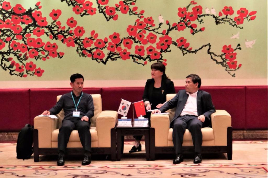 North Campus, Guangdong University of Foreign Studies, April 14th, 2021: SON SANGHO, education officer of the Embassy of South Korea in China, together with his delegation, visited GDUFS’s north campus on the morning of April 11th. They were greeted by JIAO Fangtai, vice president of GDUFS, at the VIP Guest Room of the Executive Building. A meeting was held to deepen the cooperative exchanges between both sides with respect to education and international testing.