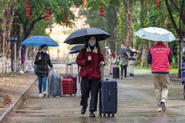 Volunteers in red jacket were busy helping those students returning to school with large luggage beside. The rushing figures on the main road of the volunteers was an impressive sight. Though the freezing wind whistled through their faces, hearing words of thanks made them feel that all their efforts were worthy.