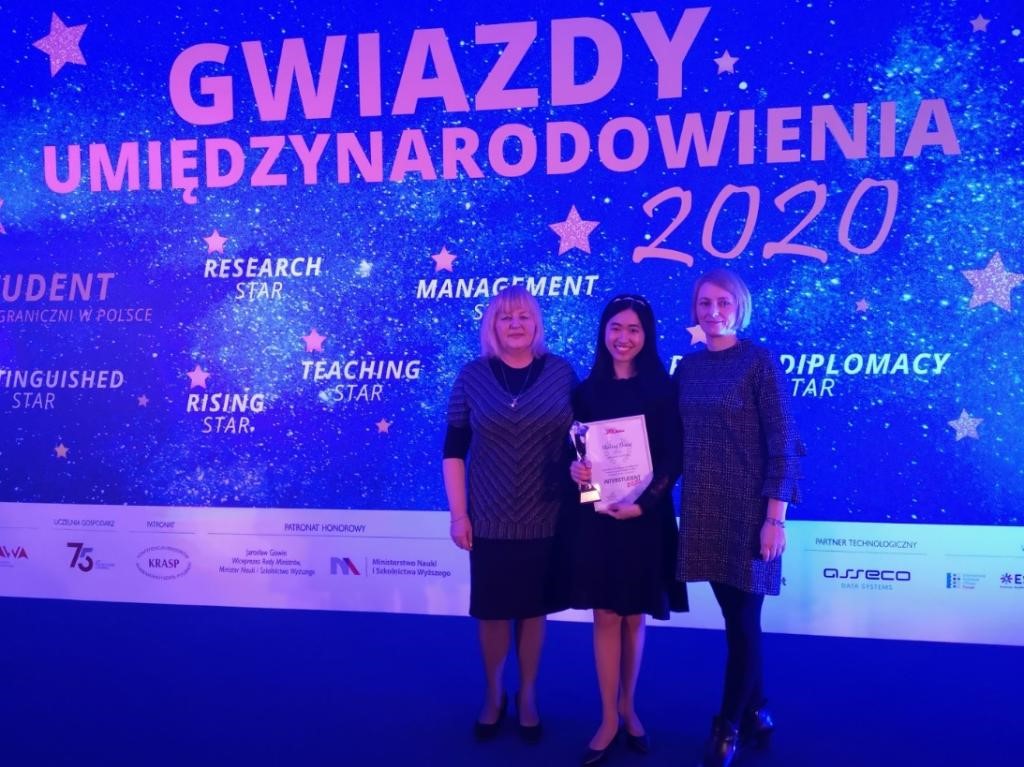 Zhang Huiling, who graduated as an outstanding graduate with Chen in the same year at GDUFS, received her Master’s degree in Teaching Polish as a Foreign Languages from Jagiellon University in Krakow, Poland. She won this award for two translations of modern Polish literature and her excellent work in promoting communication between China and Poland.