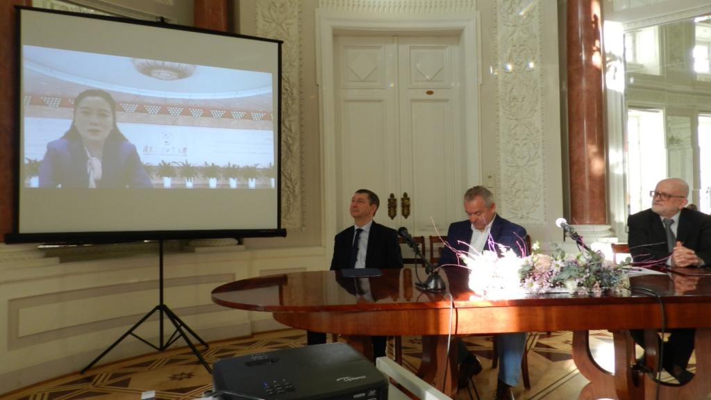 Mao Yinhui, the dean of the Center of Foreign Literature and Culture, the director of the Teaching and Research Center for Non-common Languages, and the head of Polish language program, was invited to deliver a speech at the ceremony online. Ms. Mao expressed her hope that the two universities would continue to cooperate in teaching, scientific research, and cultural exchange. She also summarized the achievements of the Polish language program of GDUFS in its discipline development, curriculum construction, personnel training, international cooperation, and cultural communication.