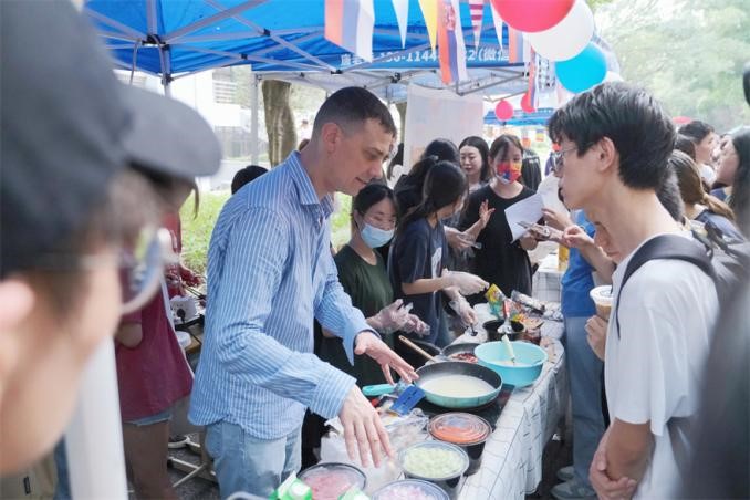 Some language departments also organized a variety of interactive cultural exchange games at the booth, such as question-answering activities to enhance participants’ understanding of European cultures while enjoying the delicacies.
