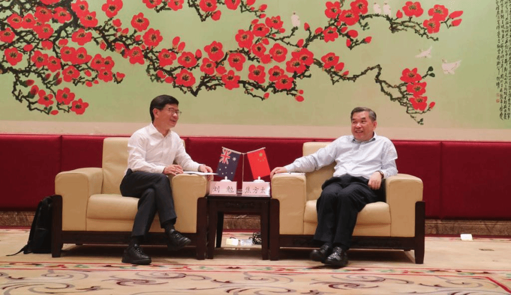On the morning of July 11, Vice President of UTS Leo Mian Liu and his delegation visited GDUFS. Vice President of GDUFS Jiao Fangtai met the guests at the VIP Reception Hall, Administration Building, Baiyun Mountain Campus, GDUFS. The two sides exchanged views on training personnel and deepening cooperation.