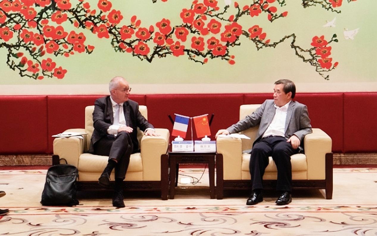 On December 12, Philippe Monin, Academic Vice President of Grenoble Ecole de Management (EM Grenoble) visited Guangdong University of Foreign Studies (GDUFS). Jiao Fangtai, Vice President of GDUFS, met guests in the VIP Hall of the Administration Building of Baiyunshan Campus. The two sides exchanged views on strengthening exchanges and deepening cooperation.