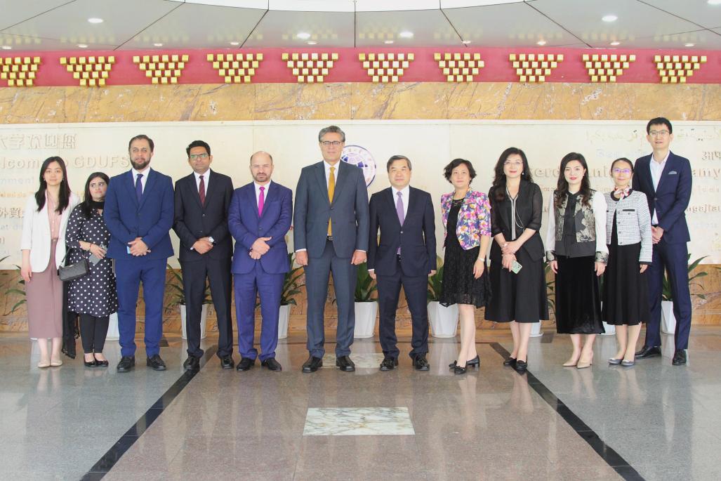 On the morning of March 29th, Ambassador of Pakistan to China Khalil Hashmi led a delegation to visit GDUFS. They received a warm welcome from Vice President Jiao Fangtai at the VIP Lounge of the Administration Building on the Baiyun Mountain Campus. The discussions centered around talent cultivation and educational cooperation between the two nations.