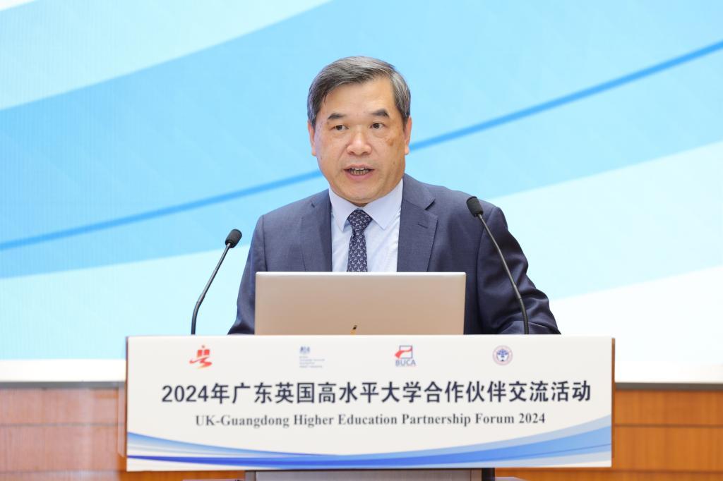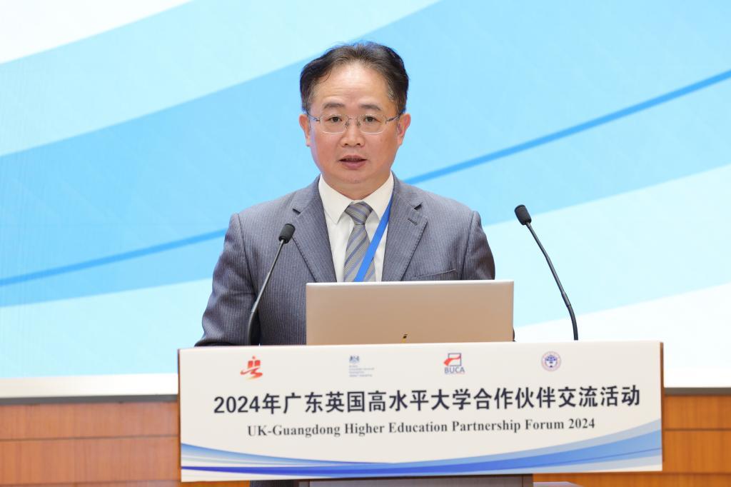 Li Jinjun, Director of the International Cooperation and Exchange Office of the Department of Education of Guangdong Province, delivered a speech on behalf of the Department of Education of Guangdong Province. Li Jinjun reviewed the fruitful results achieved by China and the UK in educational cooperation, and pointed out that in the current complex and changing international situation, strengthening educational cooperation and policy communication is of greater significance. The Department of Education of Guangdong Province will respond to the country’s call to strengthen cultural exchanges between China and Europe, promote in-depth cooperation between Guangdong and British universities, and jointly cultivate more outstanding talents with an international outlook. Li Jinjun gave an in-depth interpretation of the basic situation of Guangdong Province’s education and its opening-up policy, emphasizing that Guangdong Province will actively respond to the “Belt and Road” Initiative, strengthen educational exchanges with countries around the world, and create a brand of “Study in China, Study in Guangdong”. Besides, Guangdong Province will implement the “Education Opening-up Project”, accelerate the construction of the Guangdong-Hong Kong-Macao Greater Bay Area International Education Demonstration Zone, deeply participate in global education governance, continue to promote high-level educational exchanges and cooperation, and explore the Guangdong brand as well as the Guangdong model of education opening-up. He hoped to take the event as an opportunity to promote substantive cooperation between Chinese and British universities and provide more opportunities for students from both countries to learn from each other and grow together.