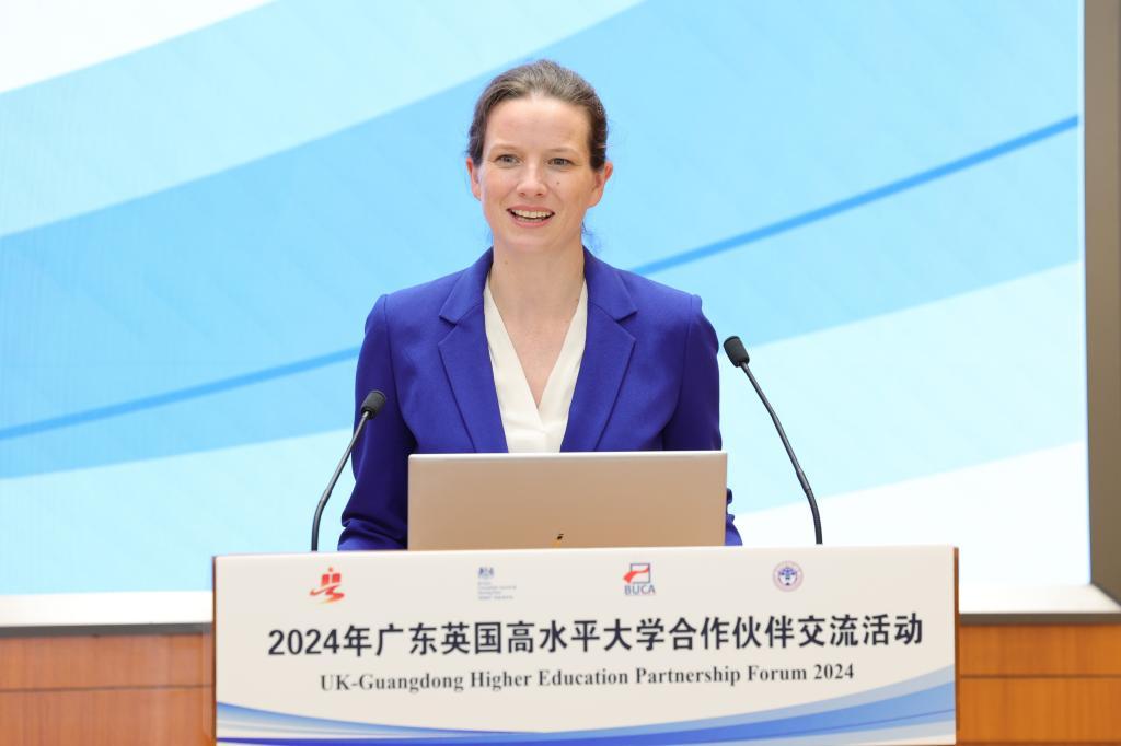 Sarah Mann, British Consul-General Guangzhou, expressed her expectations for educational exchanges and cooperation between China and the UK in her speech. She said that education is a bridge that connects different cultures and promotes mutual understanding, serving as an important part of Sino-British relations. Therefore, the successful convening of this event has built a useful platform for educational exchanges. Sino-British higher education cooperation has blossomed in many fields and has broad prospects. Guangdong, with its unique geographical location and open cultural atmosphere, is an important window for international educational exchanges. Sarah expected that the event today will become a new starting point for higher education exchanges between the UK and China, to help future educational cooperation reach new heights, and cultivate more excellent talents with international vision and competitiveness for both sides.