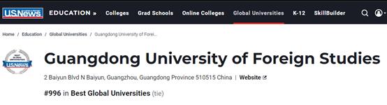 Recently, U.S. News released its 2024-2025 Best Global Universities Rankings, in which Guangdong University of Foreign Studies (GDUFS) made its debut. The university excelled in a set of widely accepted indicators, ranking #110 for the percentage of highly cited papers that are among the top 1% most cited and #226 for the percentage of total publications that are among the 10% most cited. GDUFS is ranked #996 in Best Global Universities, #318 in Best Global Universities in Asia, and #132 in Best Global Universities in China, making it the only university of its type to be included in the rankings.